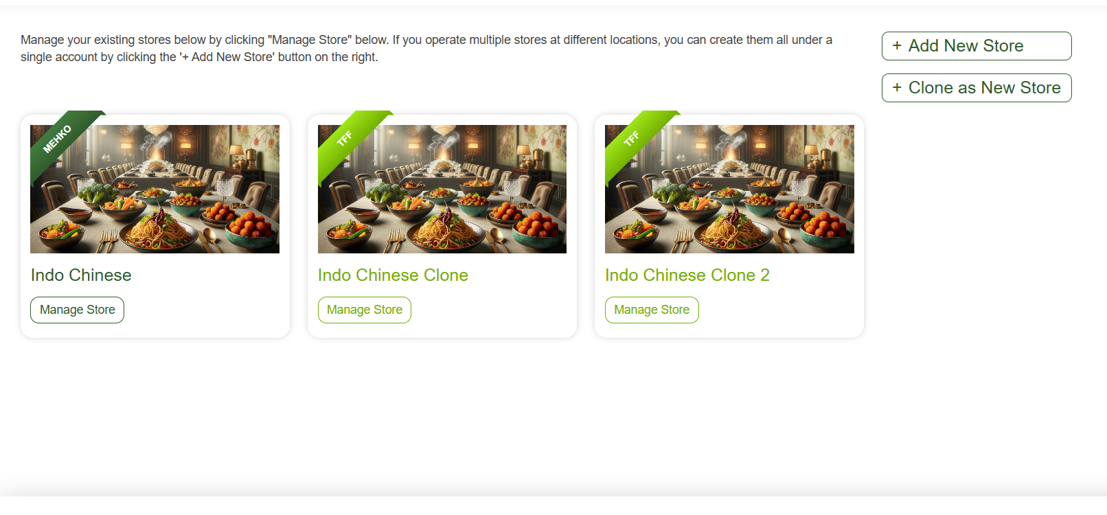 If you operate multiple stores at different locations, you can create them all under a single account. For a single mobile or pop-up store that operates at different addresses on different days of the week, you can set multiple addresses for the same store using the 'Manage Store' option for that store. Please note that the multiple locations option is not available for MEHKO.