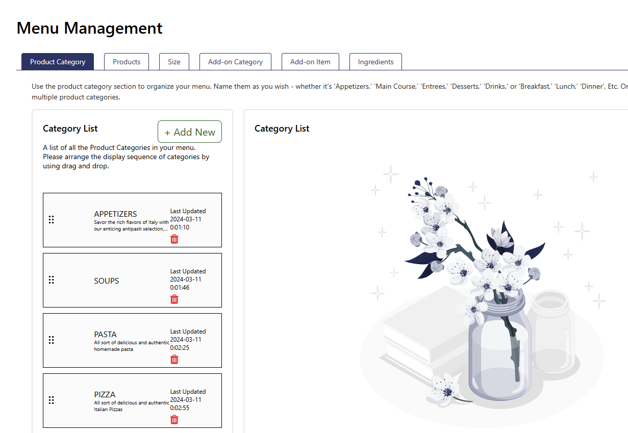 After completing your store settings, proceed to the Menu Management section to set up your menu.