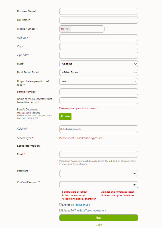 Note: You can only sell food on the platform with a valid permit.
