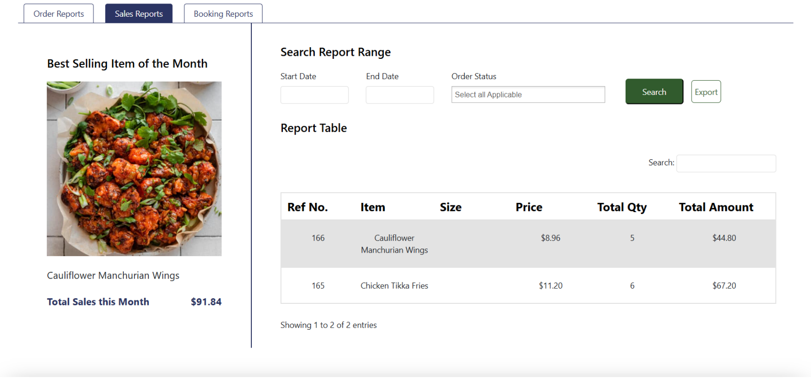 The “Sales Report” section displays the best-selling items.